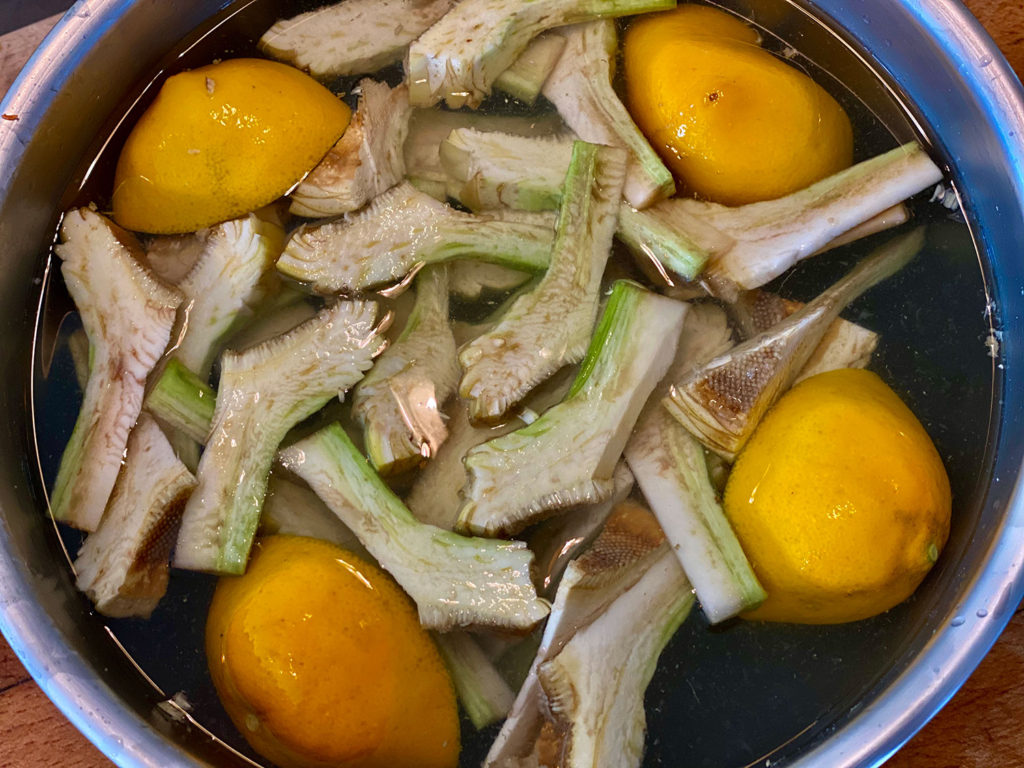 I will be offering two recipes in the coming days: Braised Pork, White Bean and Artichoke Stew and Tuscan Fried Artichokes — both a great use of the cleaned artichoke hearts as we have described. Stay tuned…