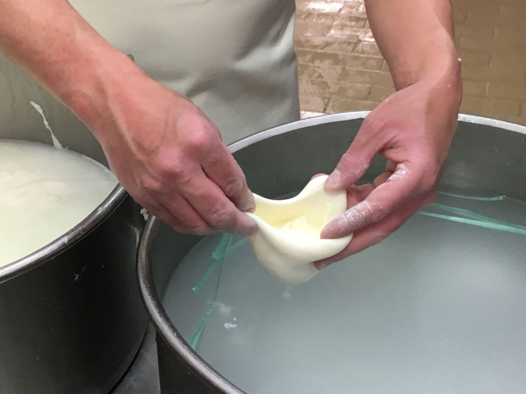 Lesson 2: Burrata – a stretched mozzarella ball filled with more mozzarella and cream and tied with the traditional green twine – originates from the village of Andria in the state of Puglia, Italy. On our tour of Puglia, we visit the Famiglia Olanda Diary and Cheese Factory; watch burrata being made, and enjoy an incredible meal featuring this and other cheeses they produce. Historically, the outer cheese would age and become hard and the center would remain soft and creamy and could be enjoyed for longer periods of time by farmers and travelers. Locally, recommend Di Stefano Burrata Alla Panna brand. Available at Whole Foods and better markets and cheese shops.